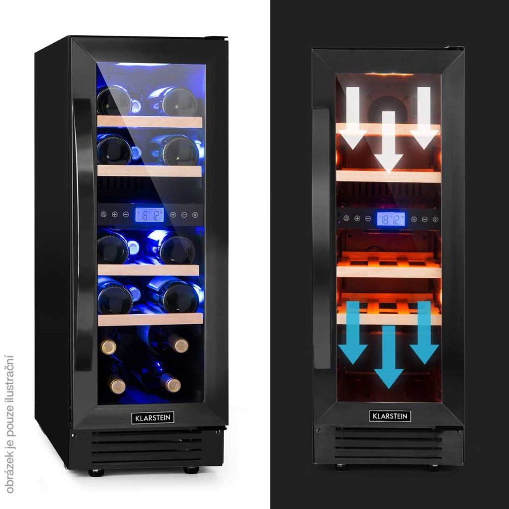 Dvouzónová vinotéka Klarstein Vinovilla 17 Built-in Duo Onyx Edition, 17 lahví
