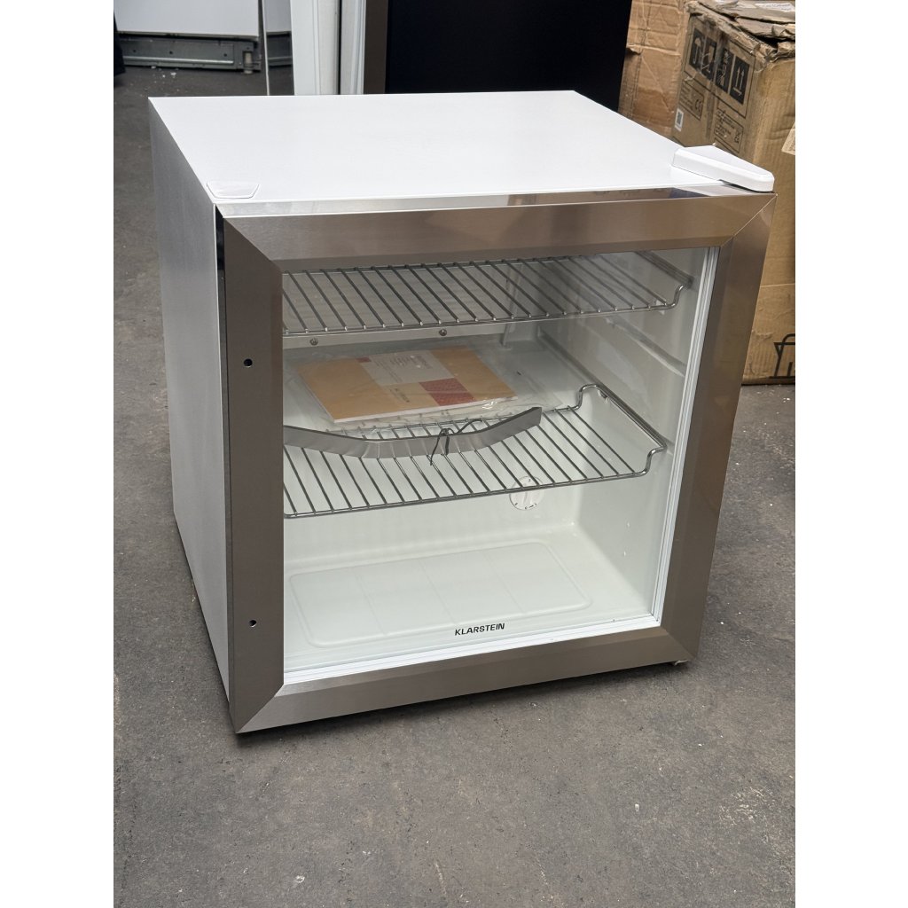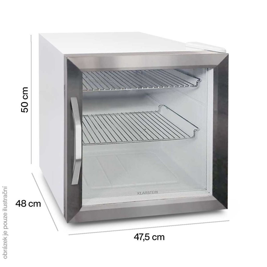 Klarstein Beersafe L Crystal White, lednice E, LED, 2 kovové rošty, skleněné dveře, bílá.