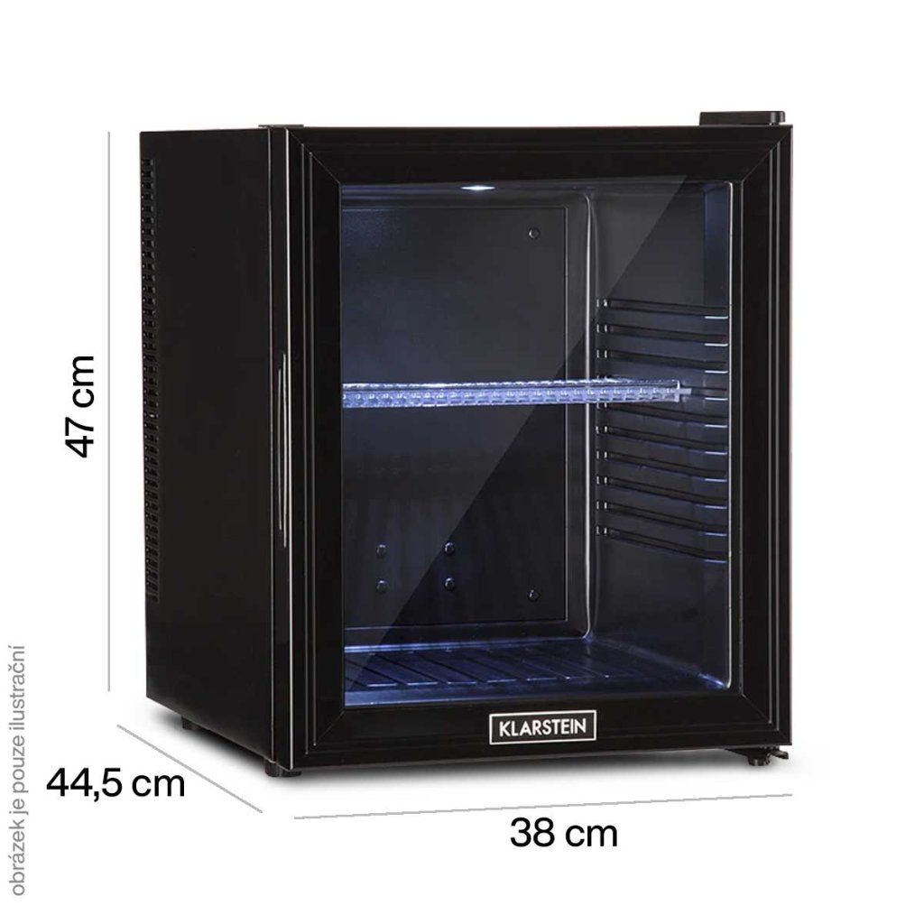 Klarstein Brooklyn 32, mini lednice na nápoje, Chladnička na nápoje, 32 l, energetická třída E, skleněné dveře, LED, police