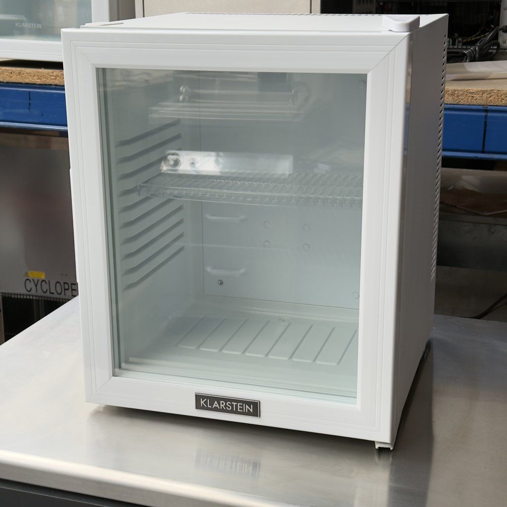 Klarstein Brooklyn 23 Silver, mini lednice, energetická třída E, skleněné dveře, LED, police