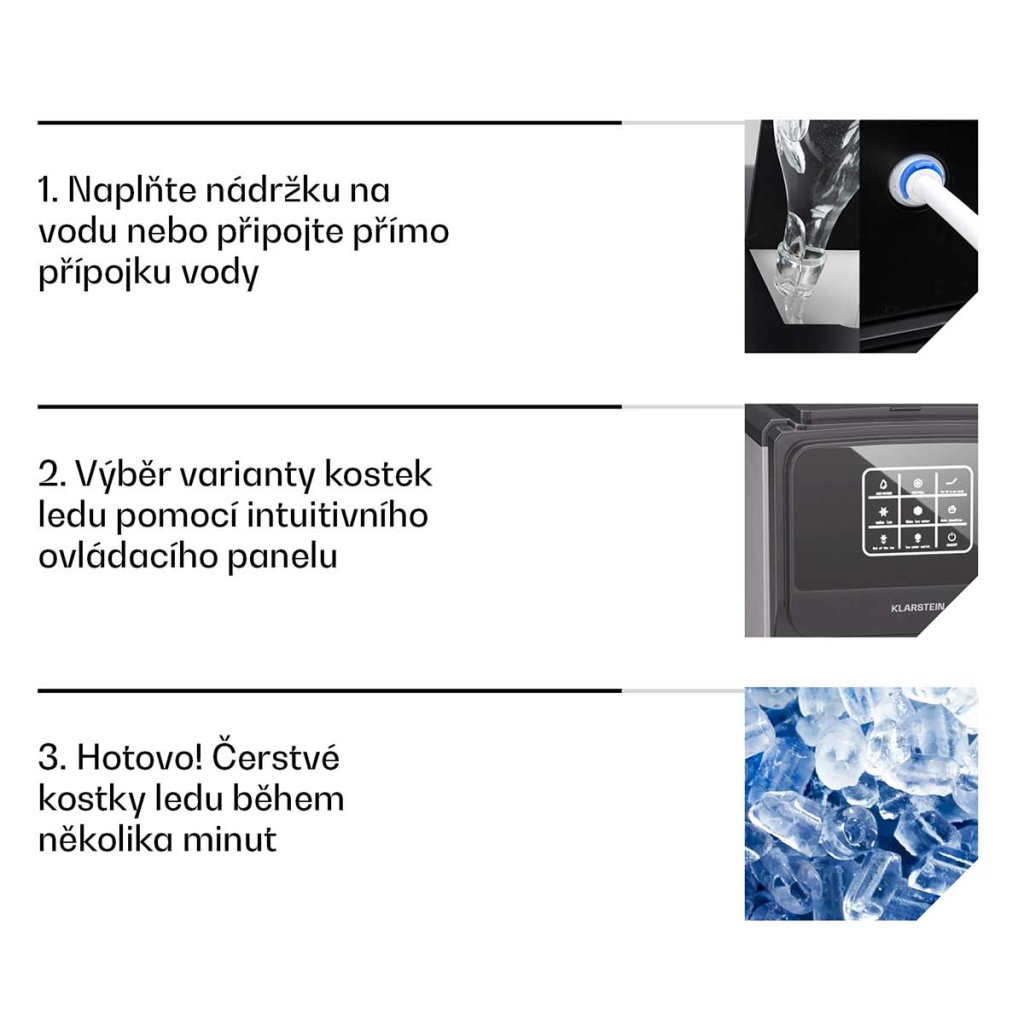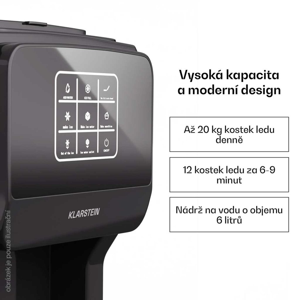 Velká kapacita: Díky 6litrové nádrži na vodu a schopnosti vyrobit až 20 kg ledu denně je ideální pro použití při větších příležitostech
