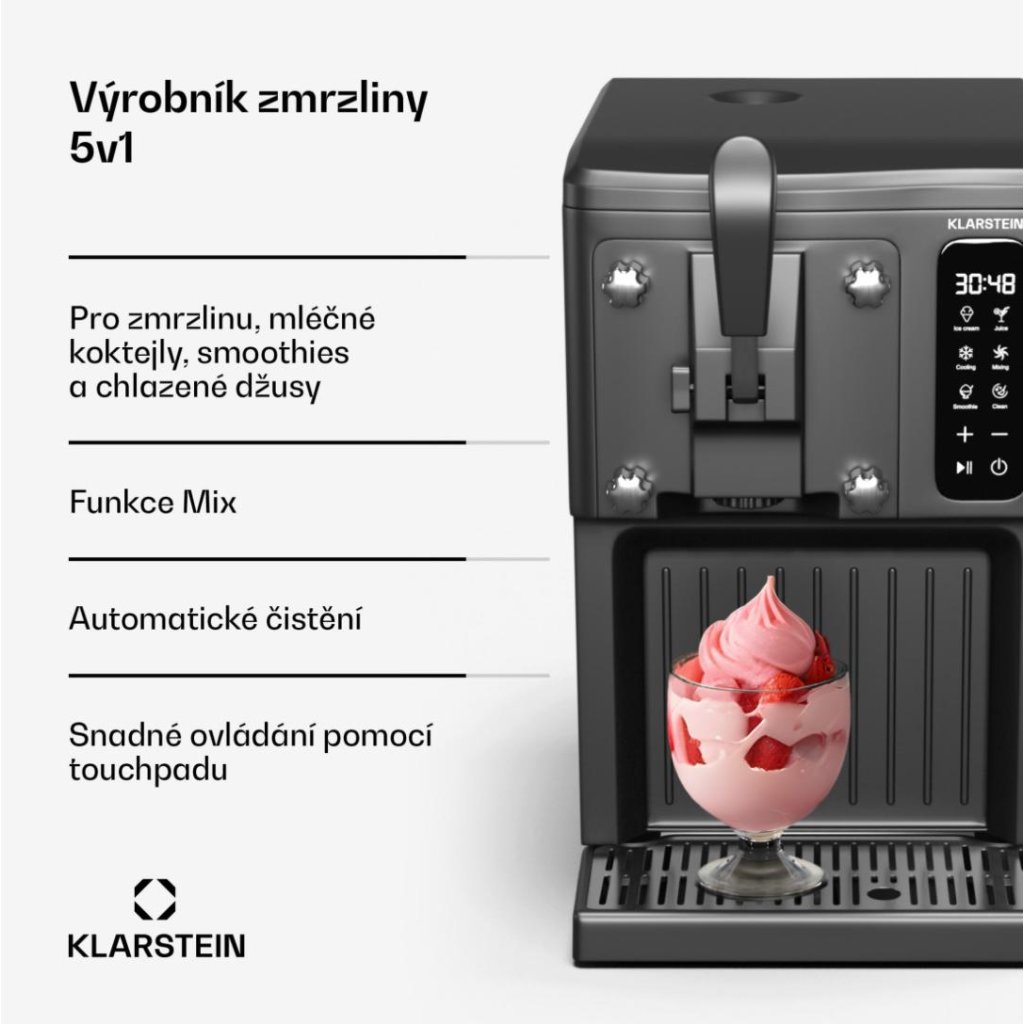 - Velká kapacita: s 1,5litrovou nádrží až na 5 litrů zmrzliny denně